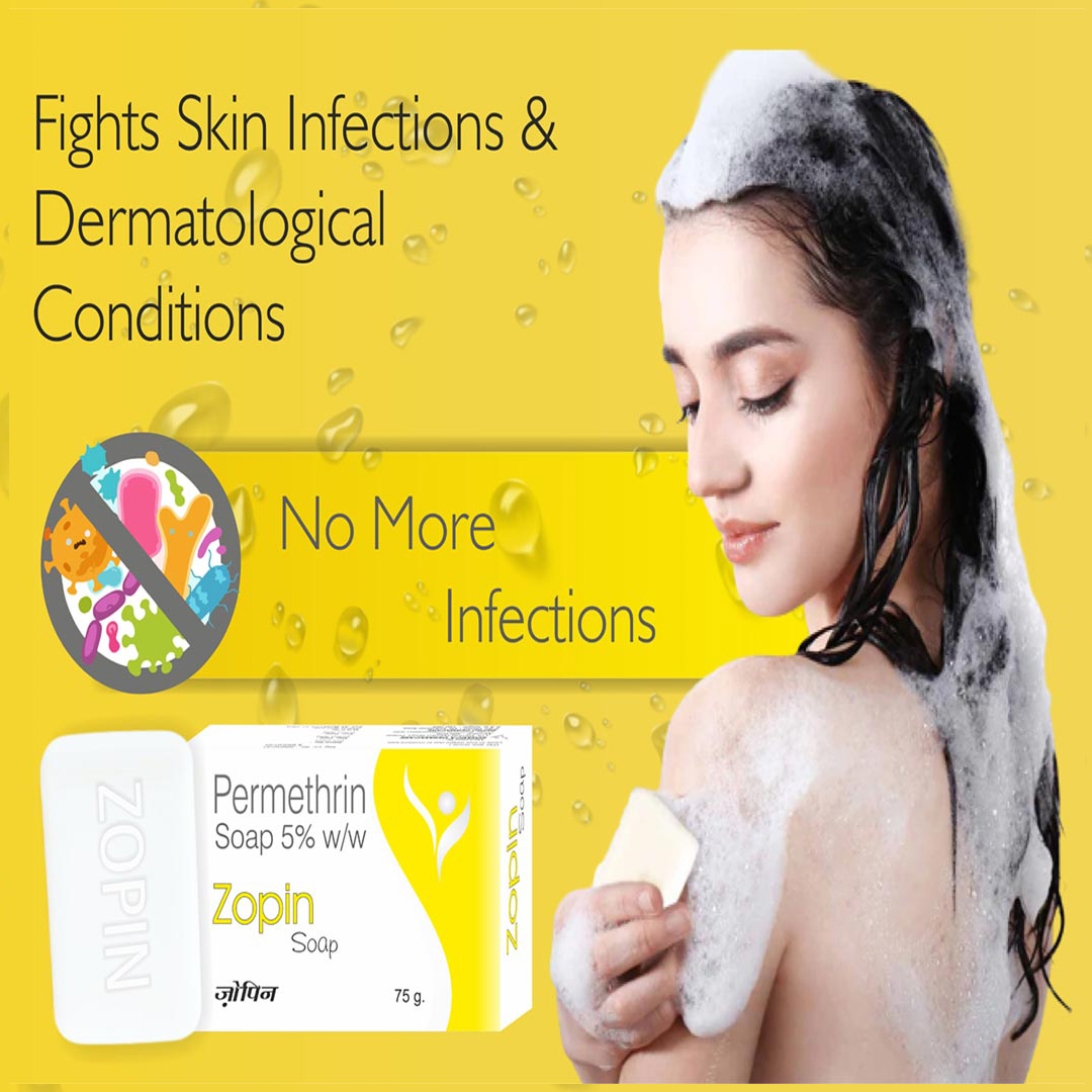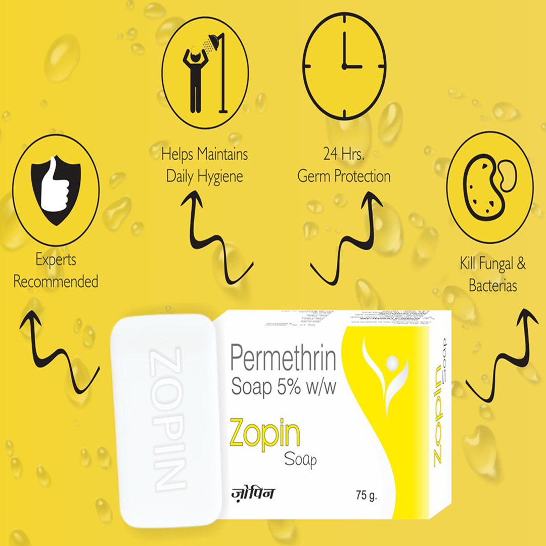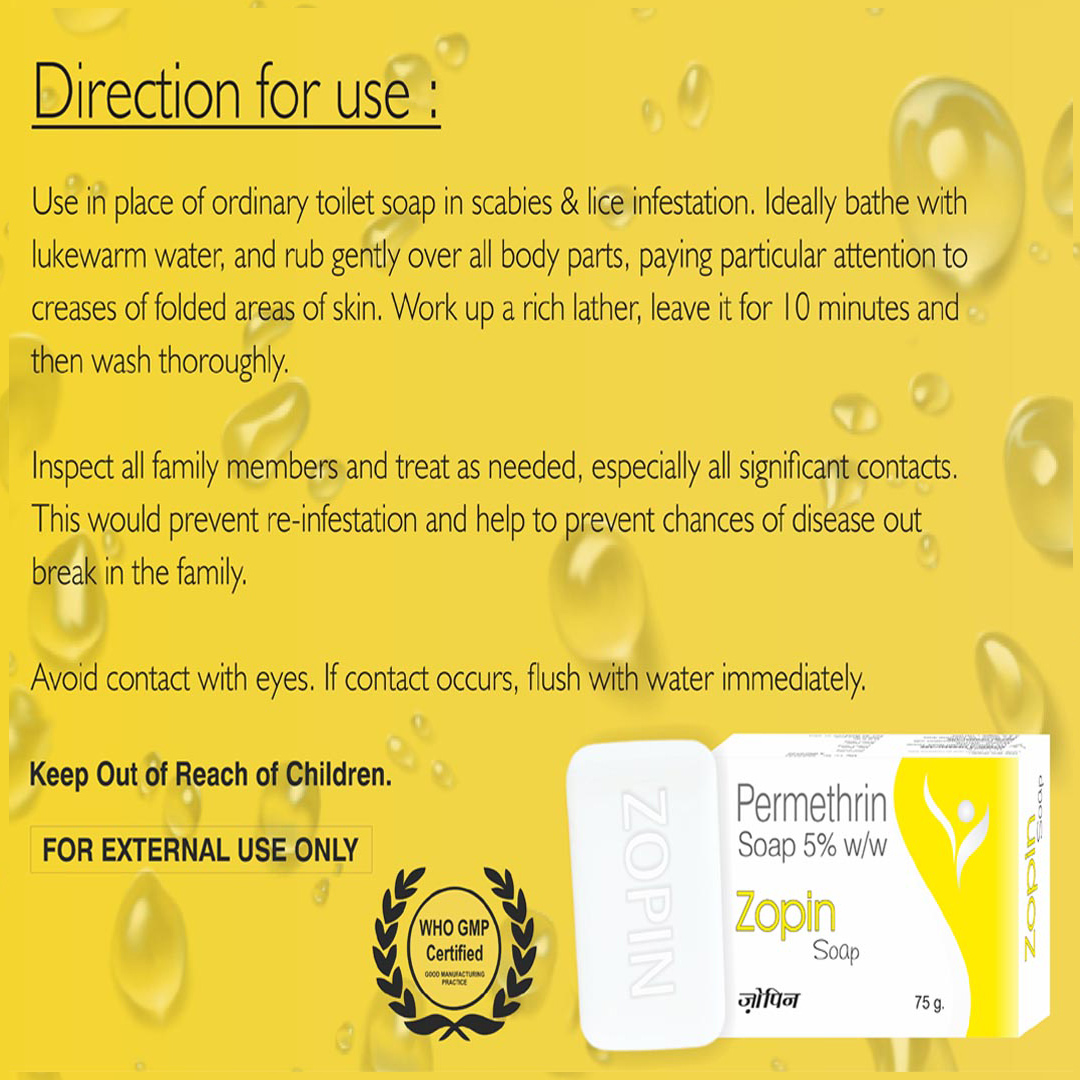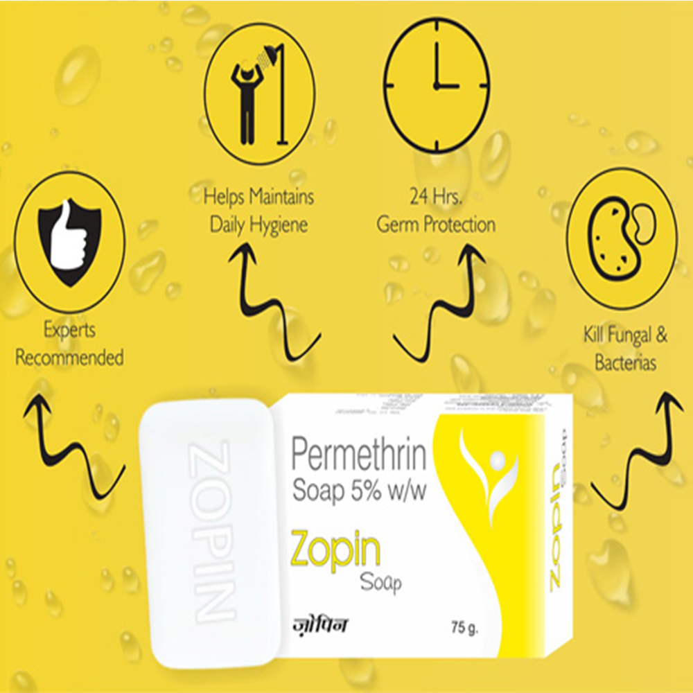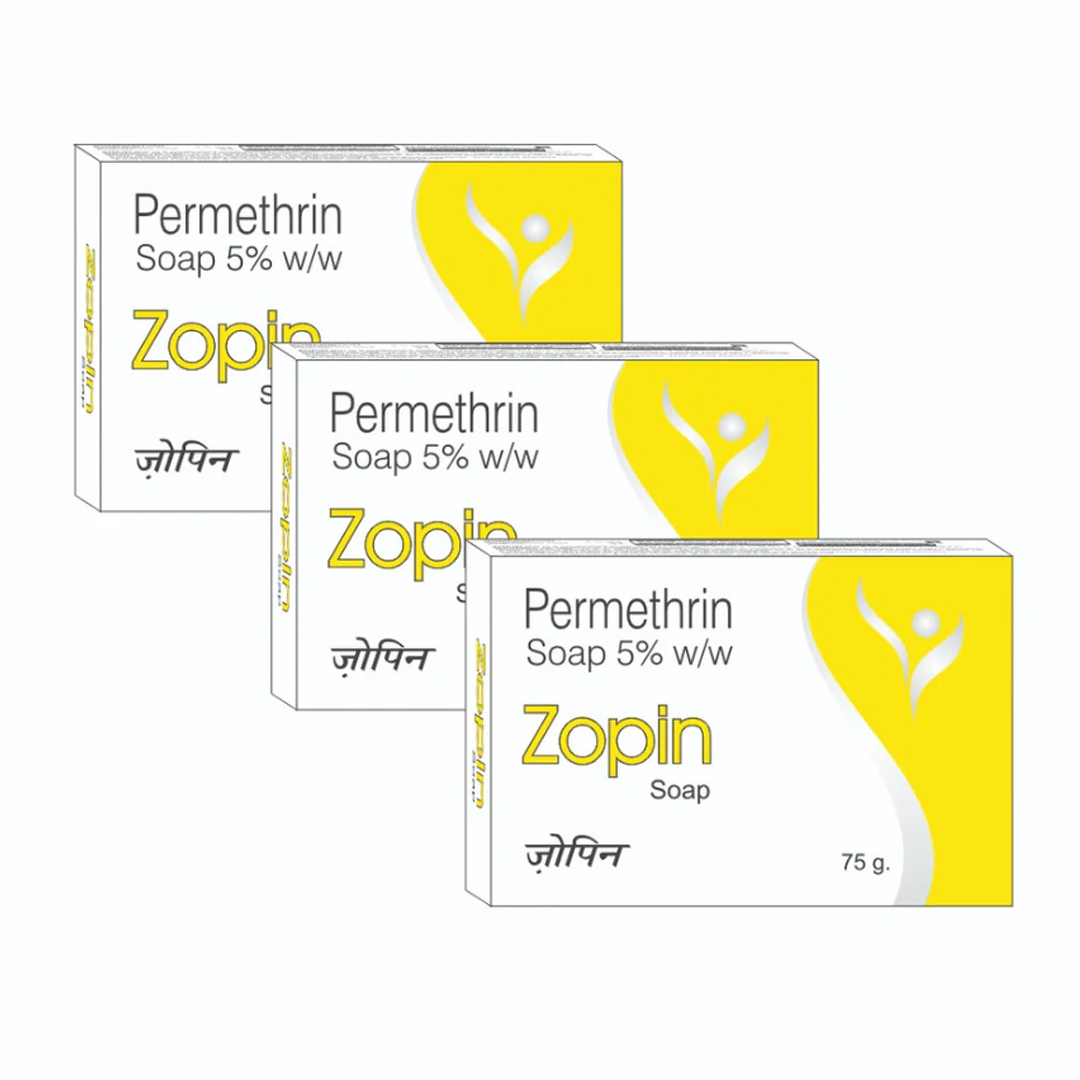 Zopin Soap is a specially formulated soap designed to treat and manage skin conditions like scabies and other mite-related infestations. Enriched with Permethrin 5% w/w, this soap works as a powerful antiparasitic agent, targeting and eliminating scabies mites and providing relief from the associated symptoms, such as intense itching and irritation. Zopin Soap is a convenient and effective solution, ideal for those seeking fast relief from scabies, while integrating seamlessly into your daily skincare routine.